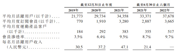 于2020年、2021年及截至2022年6月30日止六个月,公司平台的平均月活跃用户分别约为2970万、3440万及3770万。于2021年及截至2022年6月30日止六个月,公司的月活跃用户分别在公司平台总共记录约17亿次及11亿次锻炼次数。依托公司极具吸引力的产品及强大品牌,公司已能够迅速扩大用户群并巩固市场领先地位。