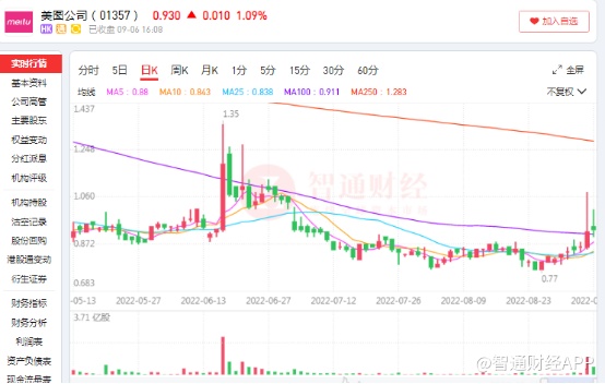 近日,美图发布的2022年半年报披露了营收超过20%的增速和良好的业务进展。随后,公司股价应声上涨,于9月5日上午大幅拉升涨超22%,成交量放大至1.02亿,当天股价重回1港元大关。