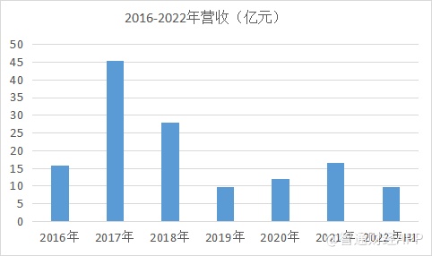 2016-2022年间,公司营收整体“缩水”,自2017年达到45.27亿元的峰值后就大幅下跌,持续处于低位;从净利润来看,自2013年起公司更是连续九年亏损,在2016年至2022年间净利润分别为-62.61亿元、-1.97亿元、-12.55亿元、-3.97亿港元、-0.41亿元以及-0.45亿元。