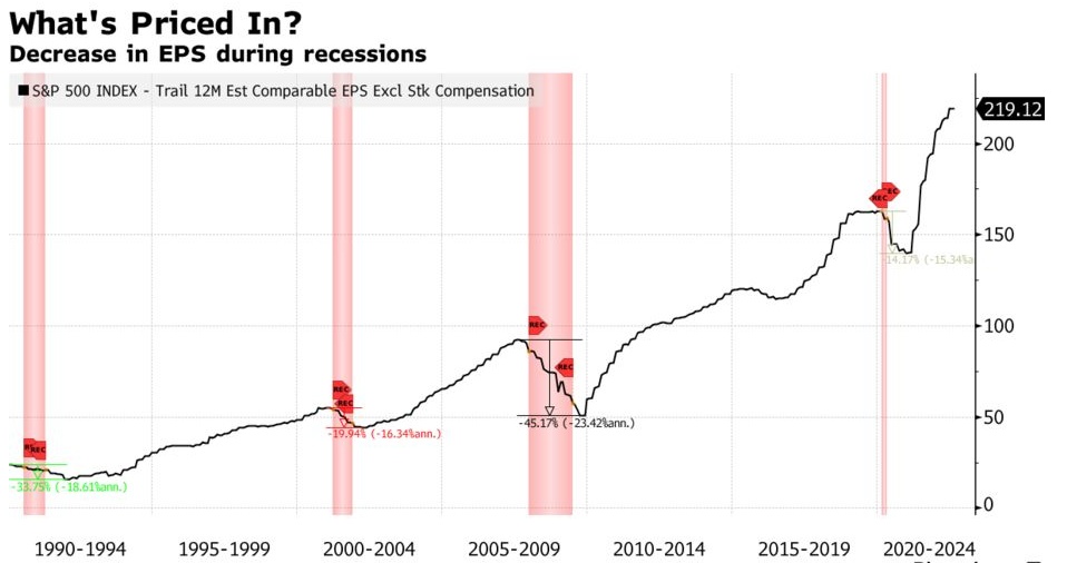 今年以来,在美联储加息、能源价格飙升等多重不利因素下,强劲的业绩似乎是美股上涨的“救命稻草”。但Richards预计,随着财务状况收紧,每股收益和市场预期将下降。他补充称:“我预计2023年每股收益将下降5%。”这与彭博汇编的数据显示,分析师们对2023年每股收益增长7%的预期形成了鲜明对比。一般来说,在经济衰退期间,每股收益往往会从下降14%变为下降45%。