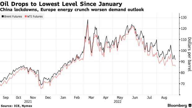 智通财经APP获悉,由于市场担心全球经济放缓将降低欧洲和美国的需求,且亚洲地区的疫情反弹抑制了原油消费,油价跌至今年1月以来的最低水平。