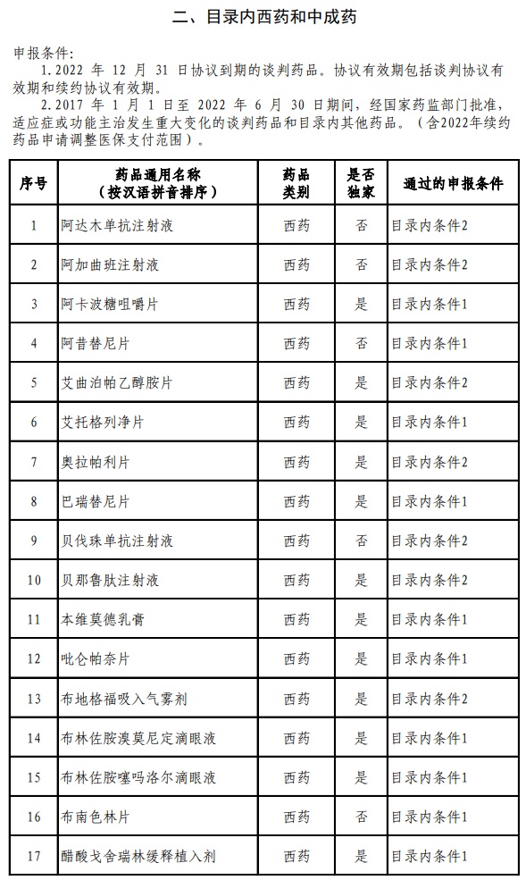 关于公示2022年国家基本医疗保险、工伤保险和生育保险药品目录调整