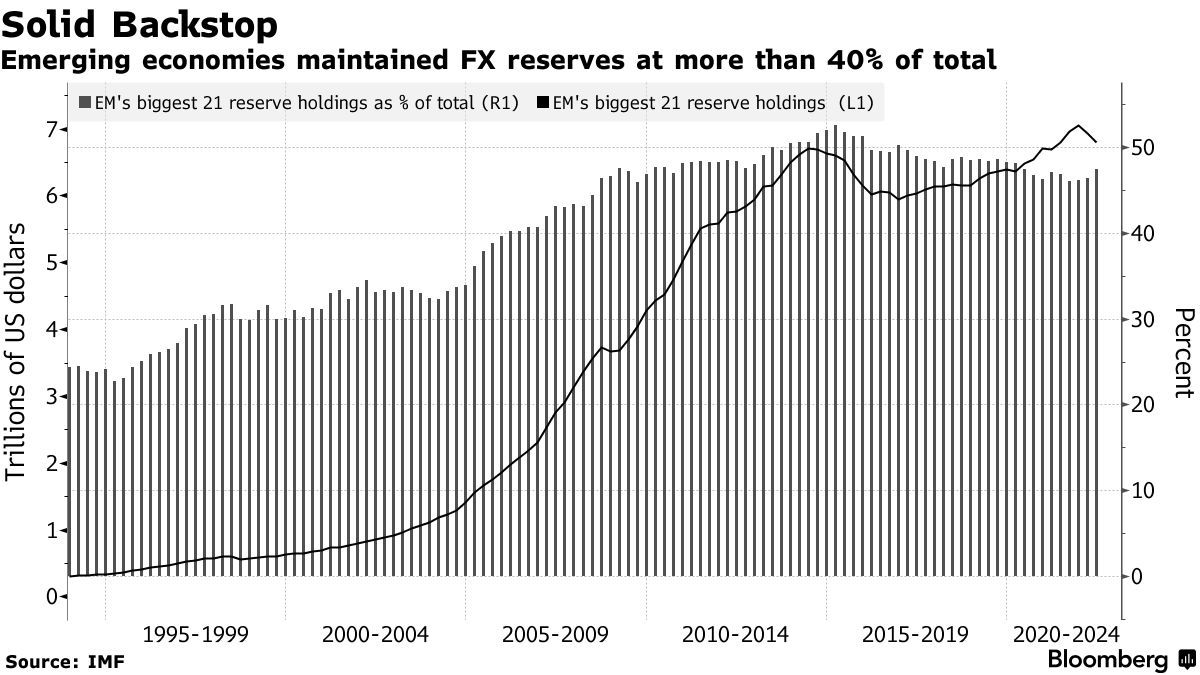 新兴经济体的外汇储备仍保持在总量的40%以上