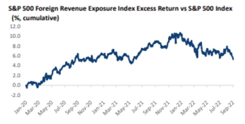 Darby称:“正如我们(早些时候)指出的那样,强势美元和全球增长减速将使标普500指数成分股公司的海外收入受到双重打击。”