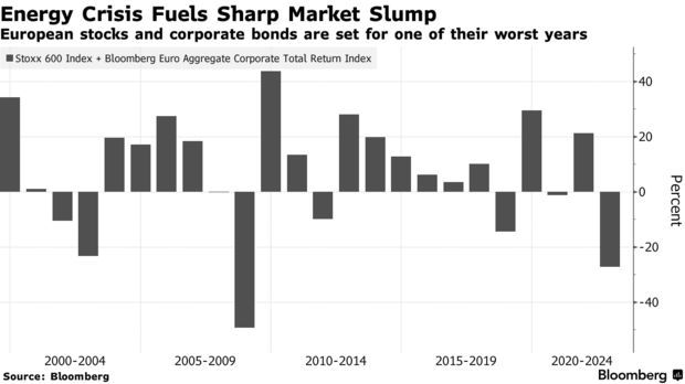 智通财经APP获悉,欧洲股市和公司债市场在今年都遭受了有记录以来最糟糕的打击,总计损失了4.5万亿美元。更重要的是,投资者可能仍然不知道情况会恶化到什么程度。在面临多重新的评估之后,欧洲股市可能还会进一步下跌。