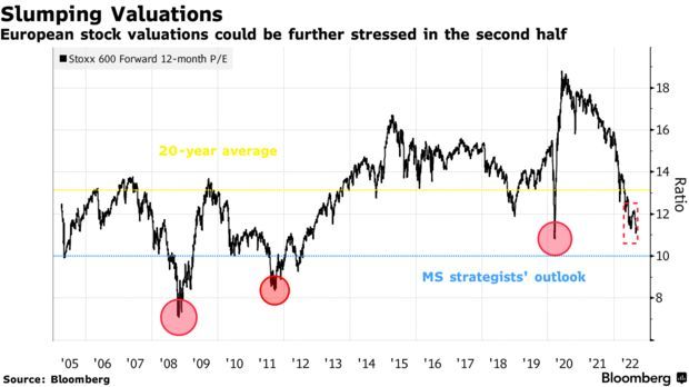 摩根士丹利策略师Graham Secker表示,在企业利润率面临10多年来最大降幅的情况下,欧股的12个月预期市盈率可能会较当前水平再下降15%。