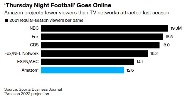 《周四橄榄球之夜》将在流媒体呈现——亚马逊预计的观众人数比TV网络上一季吸引的观众少