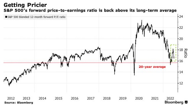 标准普尔500指数的预期市盈率回到了长期平均水平之上