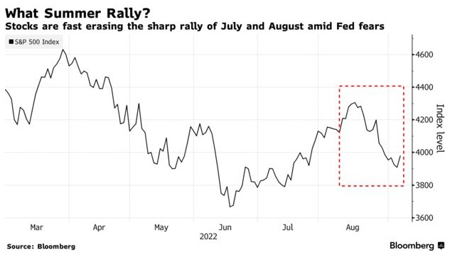 他的预测与高盛集团和摩根士丹利的分析师一致,这两家公司本周也表示,随着经济增长放缓,股市可能会跌至新低。标普500指数已抹去约一半夏季涨幅,因企业业绩乐观情绪消退,且投资者愈发担心美联储将在更长时间内保持强硬立场。