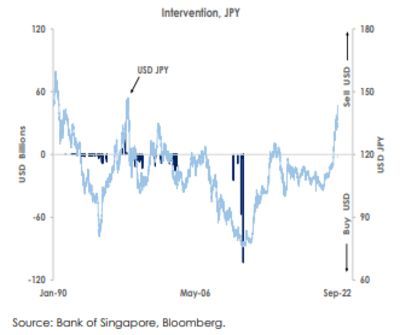 这会引起各大央行的干预吗?日元正接近日本央行可能决定采取行动的地步。下图来自新加坡银行首席经济学家Mansoor Mohi-uddin: