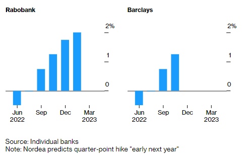 以下是各银行对欧洲央行的加息预测: