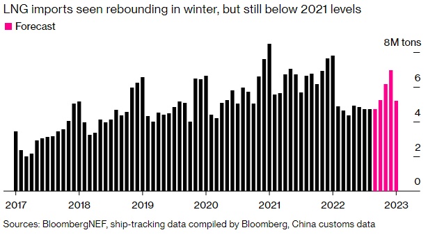 BloombergNEF 预计亚洲LNG进口量将在冬季出现反弹,但仍低于2021年的水平