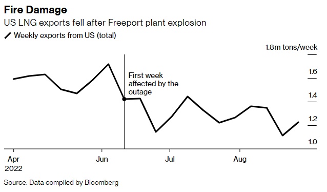 另一个重大风险是计划之外的供应中断,尤其是发生在美国自由港液化天然气厂(Freeport LNG)这样的大型设施发生的类似意外事件,该工厂设施在6月份的一场火灾中受损,这一事件显著减少了该国的LNG出口总额。