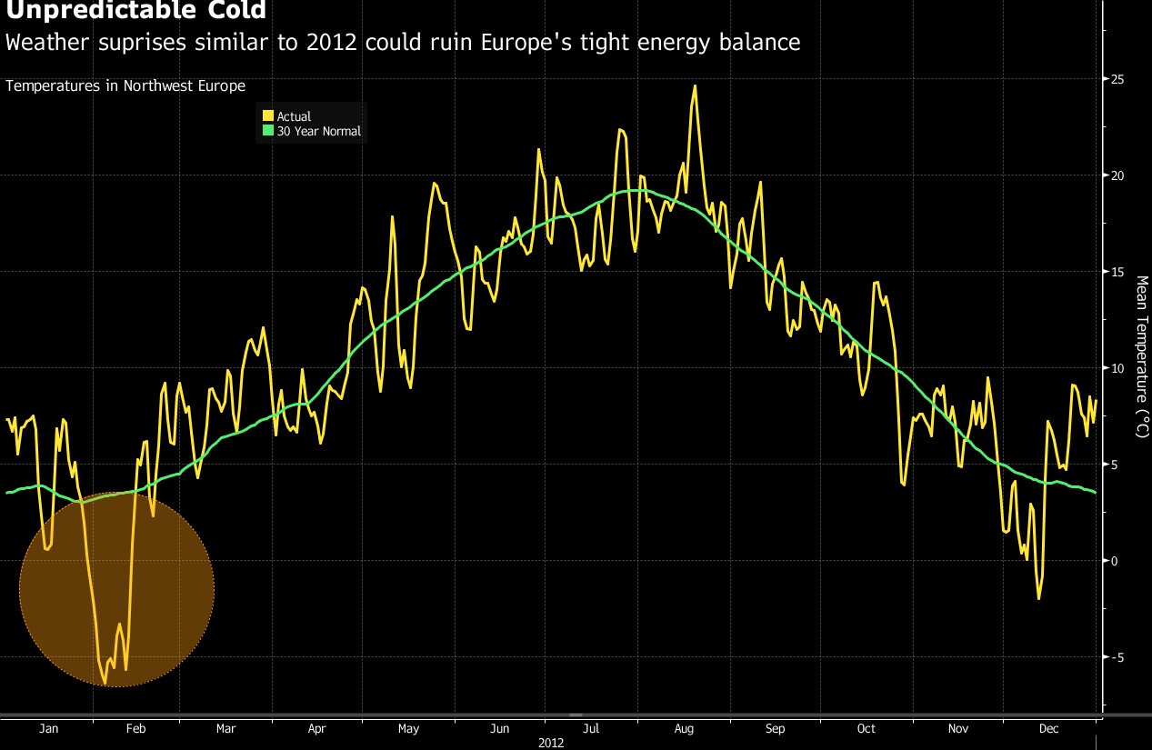 气候往往是最不可预测的一大因素。去年冬季欧洲气候相对温和,欧洲的燃料储备高于预期。而在供暖季节开始的10月份,天气预报显示气温略高于正常水平。