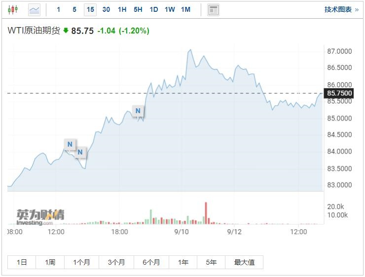 智通财经APP获悉,由于越来越多的人猜测全球需求正在减弱,以及投资者对美国主导的一项旨在限制俄罗斯原油价格的一系列细节进行了评估,油价在上周经历过山车行情后,在本周初下跌。具体来说,WTI原油期货上周一度从每桶88美元跌至81.20美元,为1月份以来的最低盘中水平,而后涨至每桶86美元。截至发稿,WTI原油期货跌1.20%,报85.75美元/桶。