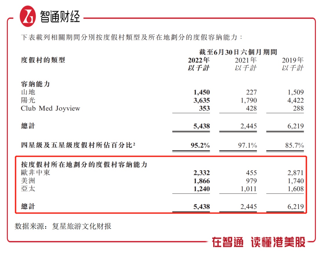 今年上半年,Club Med海外资产延续了去年下半年复苏态势,按客户预订营业额算,欧非中东及美洲分别为38.73亿元及15.6亿元,同比分别增长594.1%及194.3%,分别恢复至2019年同期的98.6%及122.3%。度假村容纳能力也得到快速修复,欧非中东及美洲恢复至2019年同期的81.2%及107.2%。