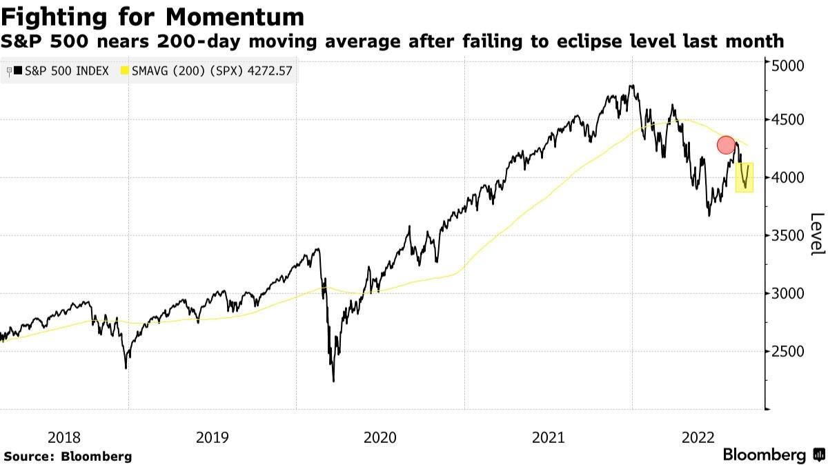 另一轮反弹可能有助于推动该指数自4月以来首次升穿200日移动均线。Lerner称,如果标普500指数无法突破这一水准,则表明逆势反弹已经展开,且由于该指数面临4,200至4,300点的阻力,市场准备再次下跌。