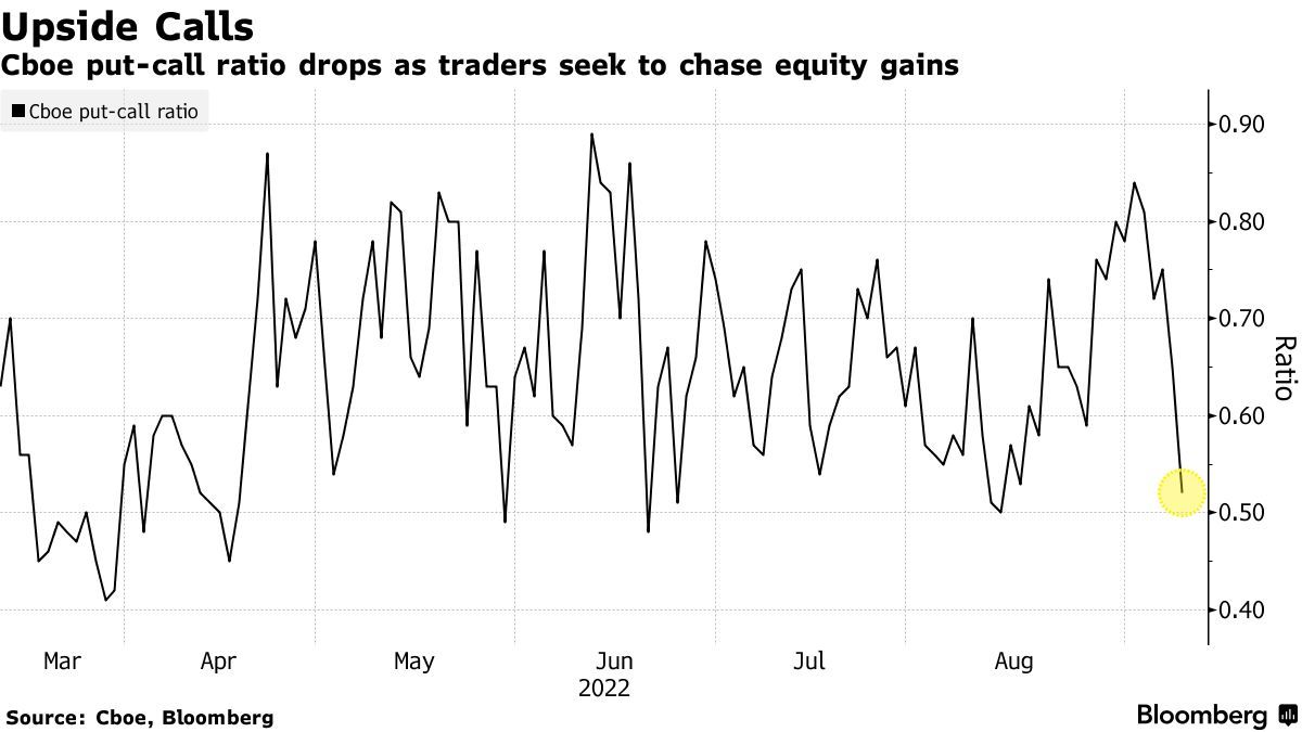 交易员寻求追逐股票收益之际,芝加哥期权交易所看跌/看涨期权比率下降