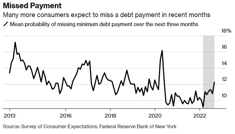 更多的消费者预计在最近几个月将无法偿还债务