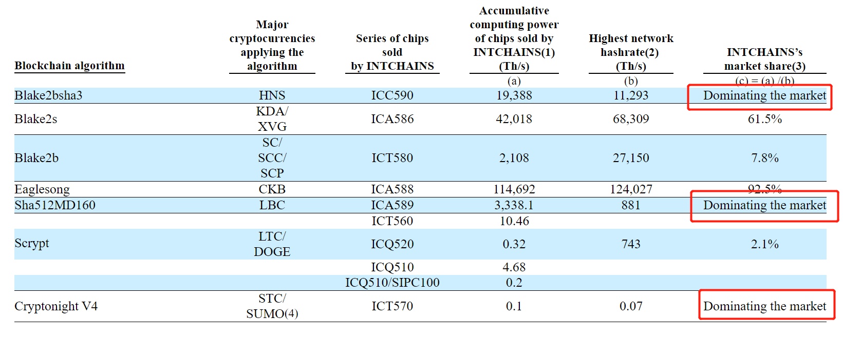 从行业来看,针对代币的ASIC芯片市场相对分散,因为不同的代币需要不同的算法。不过在某些细分的领域,集中度也会相当高。据弗若斯特沙利文数据显示,若以累计销售算力而言,从2019至2021年,聪链集团在Blake2bsha3、Blake2s、Eaglesong、Sha512MD160和Cryptonight V4等多种关键算法设计的ASIC芯片市场中份额领先。