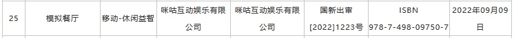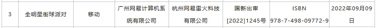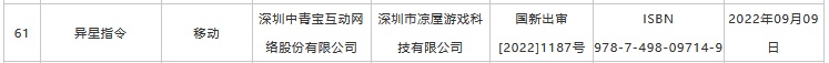 智通财经APP获悉,9月13日,国家新闻出版署公布2022年9月份国产网络游戏审批信息,共计73款游戏获批。在此次获批版号的游戏中,重点游戏包括网易(09999)的《全明星街球派对》、中青宝(300052.SZ)的《异星指令》、咪咕互娱的《模拟餐厅》、领音文化的《四季之春》、心动公司(02400)的《模拟江湖》、吉比特(603444.SH)子公司雷霆网络的《皇室护卫队》等。在这一次发放中,腾讯依旧没有获得版号。