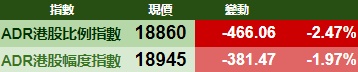 智通财经APP获悉,周二美股三大指数全线大跌,港股ADR指数下跌,按比例计算,收报18860点,较香港收市跌466.06点或2.47%。