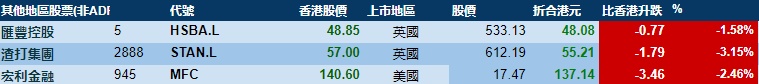 大型蓝筹股全线下跌,汇丰控股收报47.85港元,较港收市跌2.04%;腾讯控股收报300.65港元,较港收市跌1.36%。