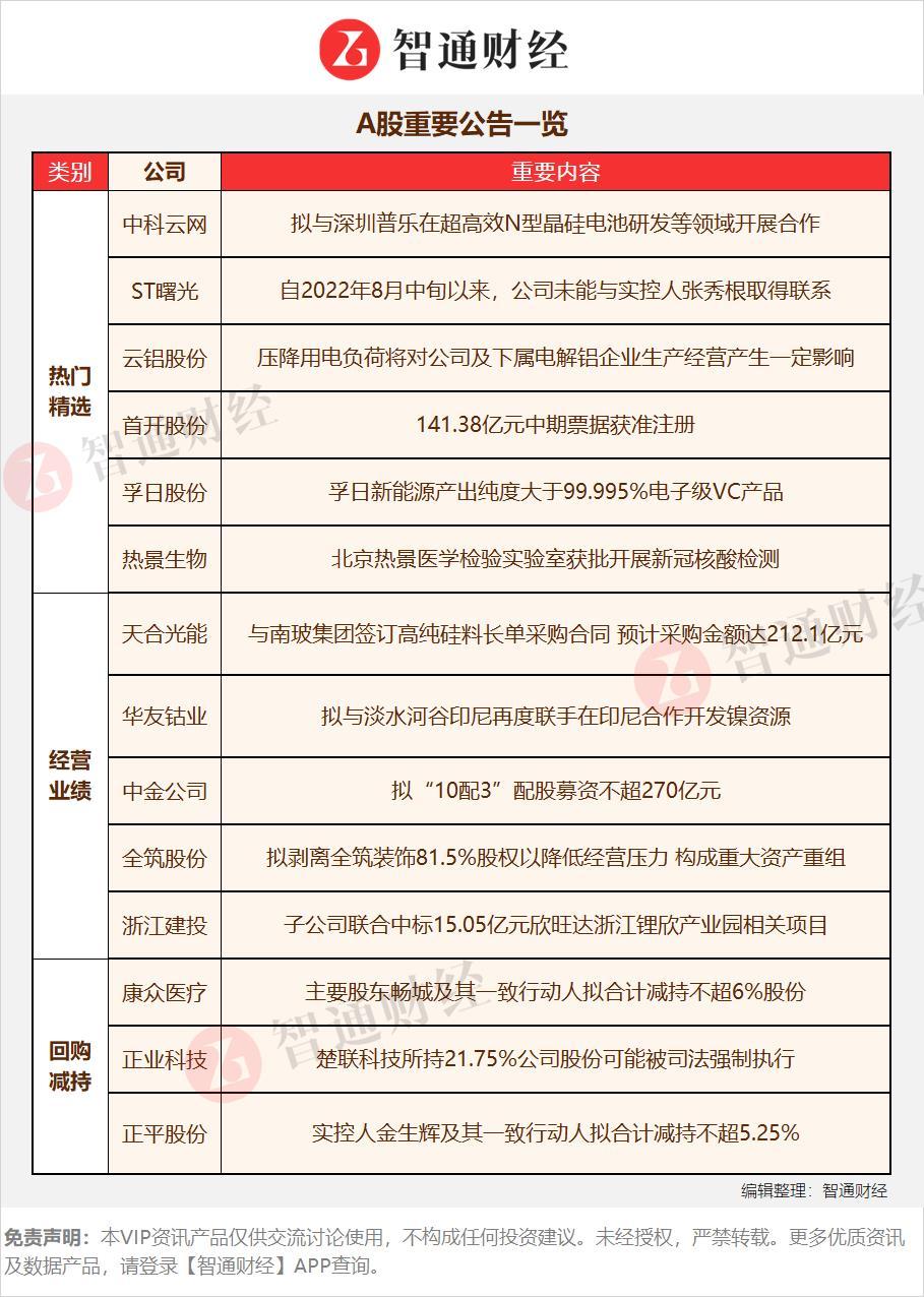 【A股重要公告一览】