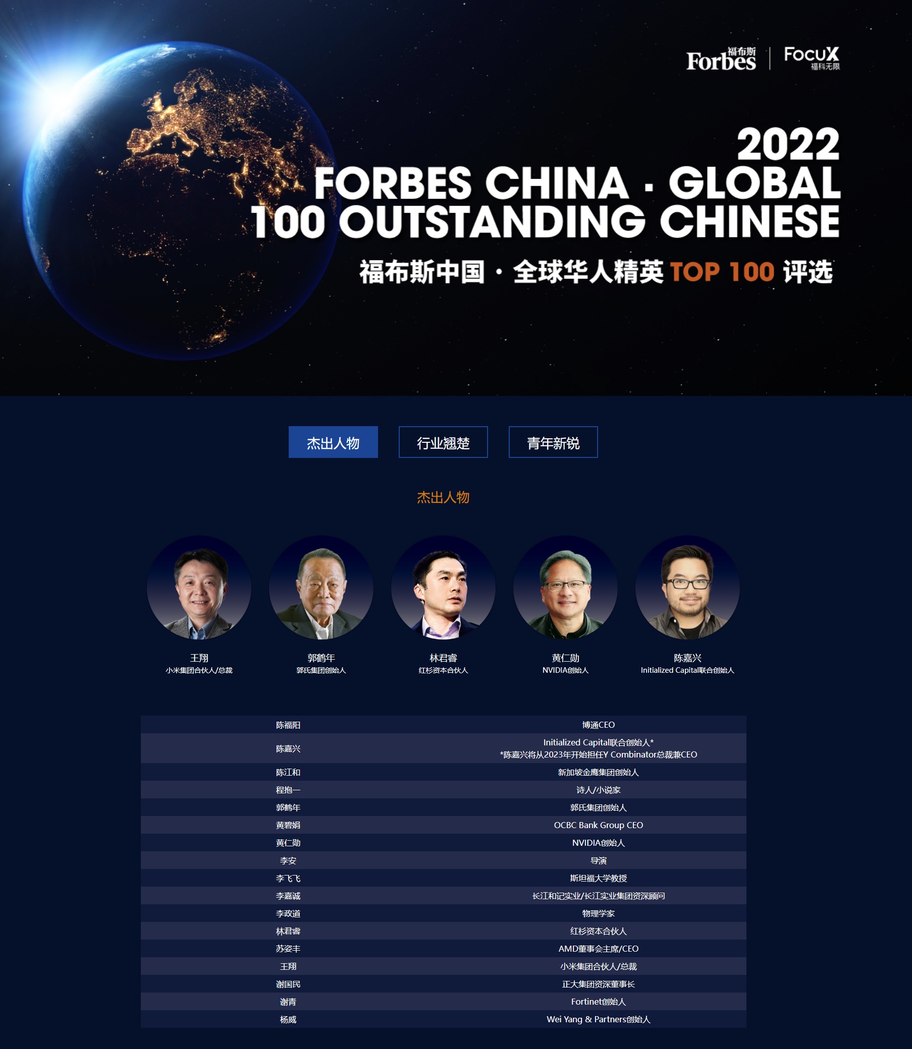 “2022福布斯中国·全球华人精英Top 100评选”,聚焦海外青年人才和青年企业家,从包括美洲、欧洲、亚洲、大洋洲等多个地区的商业和文化领域,总计遴选出100位杰出的全球华人代表,并设有商界领袖、杰出人物、潜力精英3大奖项类别。