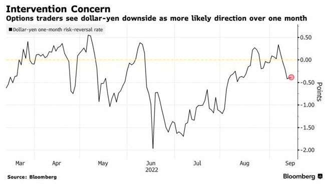因此,期权交易者也开始寻找防范日本可能采取行动的手段。根据美元兑日元的一年期风险逆转(一种衡量该货币对在此期间预期走向的指标)显示,日元短期内将继续下行。