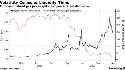 智通财经APP获悉,俄乌战争引发的巨大价格波动扰乱了天然气、原油和金属等大宗商品市场,导致它们正面临长达数个月的流动性危机。大多数原材料市场的交易活动已降至低水平,上周石油期货的未平仓合约数量触及2015年以来的最低点,而天然气、糖和铝期货的持仓量均位于或接近多年来的最低水平。