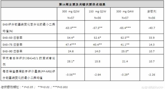 但在面对国内市场的中国亚组人群数据分析中,相对于整体研究人群,中国亚组人群(n=32)在基线时EASI评分的中位数更高、IGA评分=4的比例更高、BSA皮肤受累面积更大,尤其在300mgQ4w的剂量组数据上有显著提升。简言之,中国亚组人群中入组的患者数据,显示出CBP-201有更大的治疗获益,这无疑有助于该产品在国内的获批。