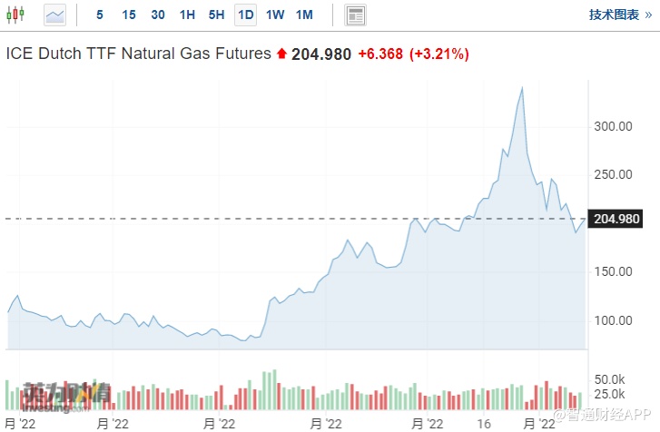 智通财经APP获悉,欧洲的天然气价格周三延续涨势,交易员们正在等待欧盟委员会即将公布的能源干预计划。截至发稿,荷兰TTF天然气期货价格涨3.21%,报204.98欧元/兆瓦时。