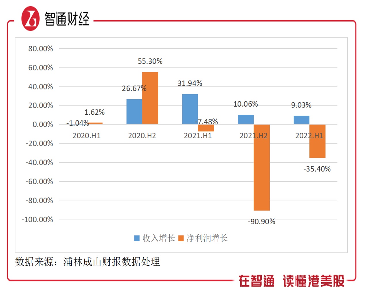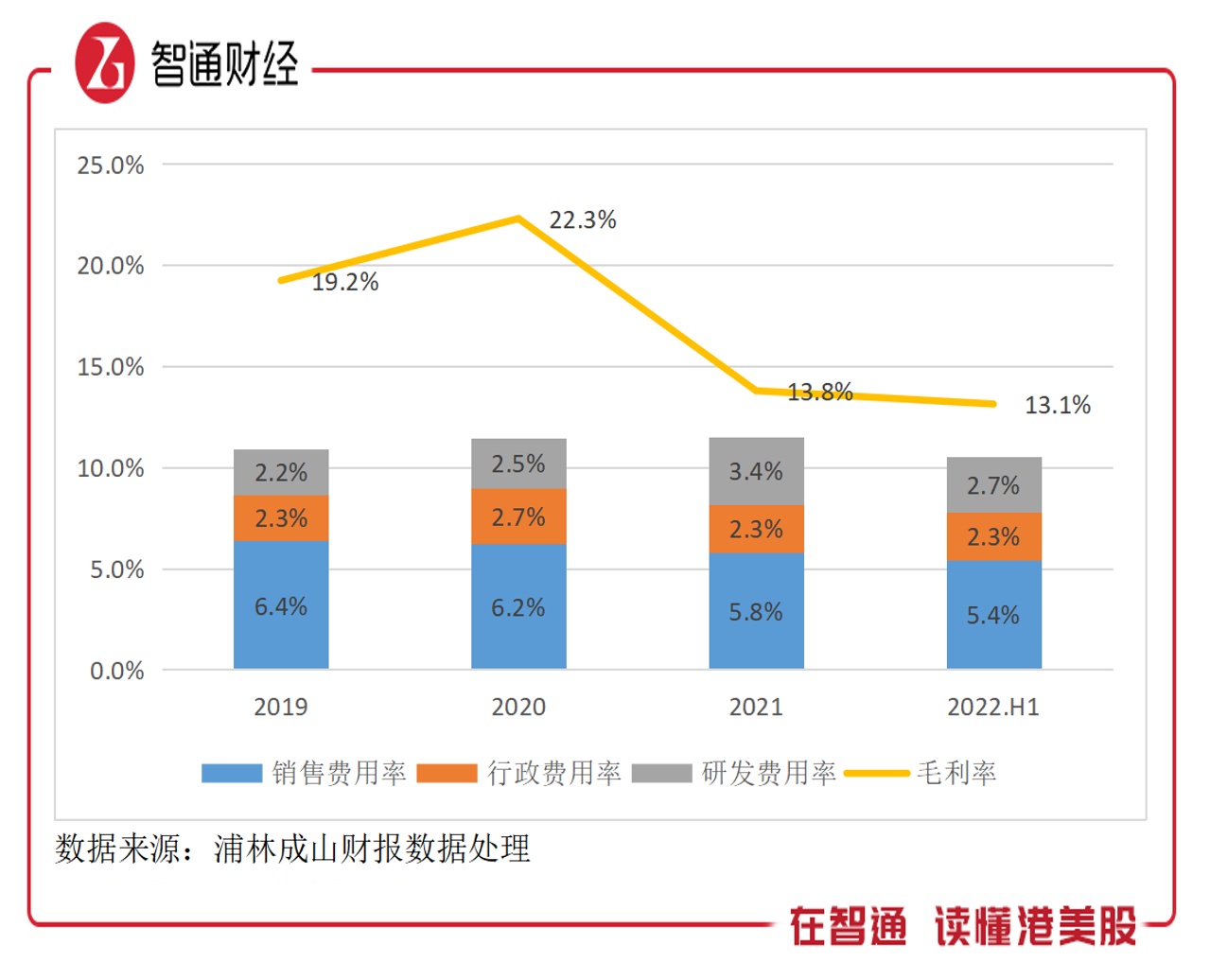 2020年-2022年上半年,该公司收入及净利润增速分别为12.42%、19.96%及9.03%和26.08%、-54.32%及-35.4%。以半年度看,2021年后业绩变化最为明显,收入增速持续放缓,而净利润则是持续下滑,其中去年下半年下滑幅度高达90.9%。该公司将盈利能力下滑归咎于原材料价格及海运费的上涨。
