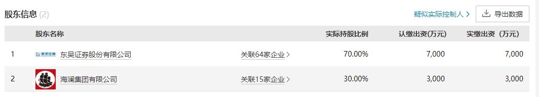 东吴基金于2004年9月成立,也是一家典型的券商系公募基金。从股权结构来看,Wind数据显示,东吴基金两位股东分别为东吴证券股份有限公司和海澜集团有限公司,持股分别为70%、30%。