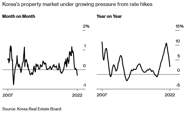 韩国央行自去年8月以来已累计加息200个基点,该央行旨在遏制通胀的紧缩政策正在打击房地产市场。韩国央行开始加息的时间早于大多数发达国家,预计该央行将在下个月的会议上再度加息。另外,一项针对消费者的调查显示,人们对韩国经济的前景是自2011年以来最悲观的。