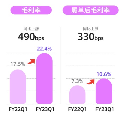 日前,波奇宠物公布了2023财年第一季度的财务业绩。财报显示,Q1期间波奇宠物实现毛利7070万元(人民币,单位下同),同比增长25.3%,对应毛利率升至22.4%,较去年同期增加了近5个百分点。
