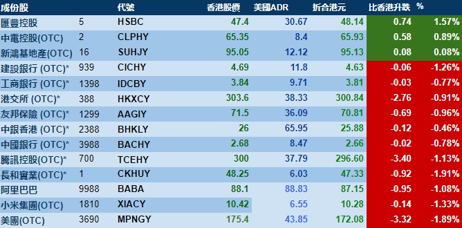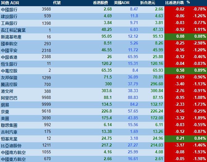 智通财经APP获悉,周四美股三大指数集体收跌,港股ADR指数下跌,按比例计算,收报18812点,较香港收市跌118.49点或0.63%。