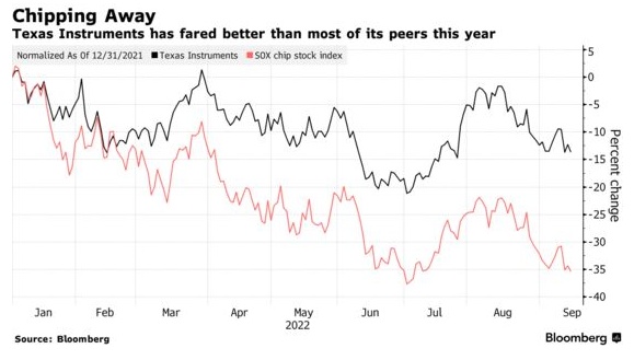 德州仪器的股票今年经历了大幅下跌,不过该股的跌幅没有芯片行业的同类股那么大。过去一年它下跌了 18%,而费城半导体指数下跌了 26%。