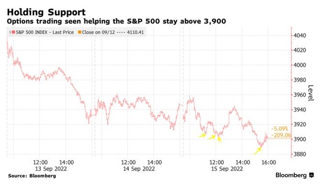 观察股市走势的交易者看到,标普500指数盘中曾四次滑向3900点,但最终守住了阵地。一种理论认为,这种反弹可以归因于周五3.2万亿美元的期权到期。