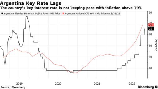 智通财经APP获悉,阿根廷央行周四提高了基准利率5.5个百分点至75%,以支撑其货币并控制通胀。数据显示,该国8月CPI上升近79%,是30年来最快的增速。