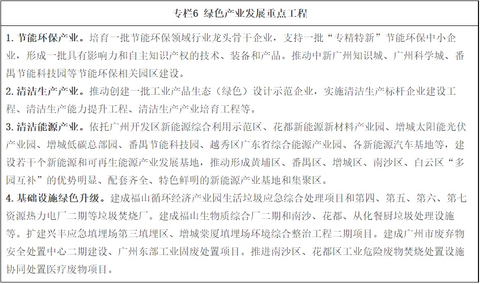 (三)牢牢把握粤港澳大湾区建设等重大战略机遇。加快推动形成粤港澳大湾区、一核一带一区6、广州都市圈等“区域大环保格局”,有助于从更高站位、更长眼光上协同推进我市经济高质量发展和生态环境高水平保护,进一步发挥广州国家中心城市和粤港澳大湾区核心引擎作用。广州要发挥好历史底蕴深厚、枢纽功能强大、商业贸易活跃、产业体系健全、创新资源富集等巨大优势,加快构建具有国际竞争力的现代产业体系,进一步提升生态环境质量,积极推进粤港澳大湾区交通、能源、水利等基础设施互联互通和智能化、绿色化发展,加快建设宜居宜业宜游品质城市。