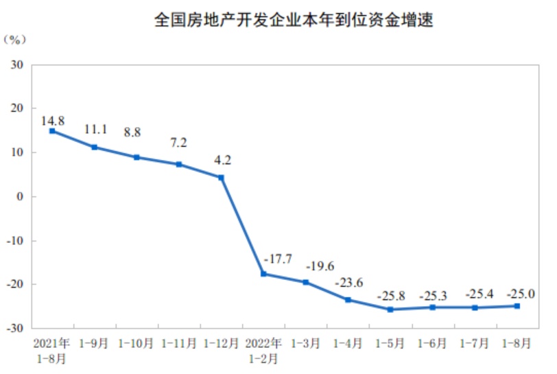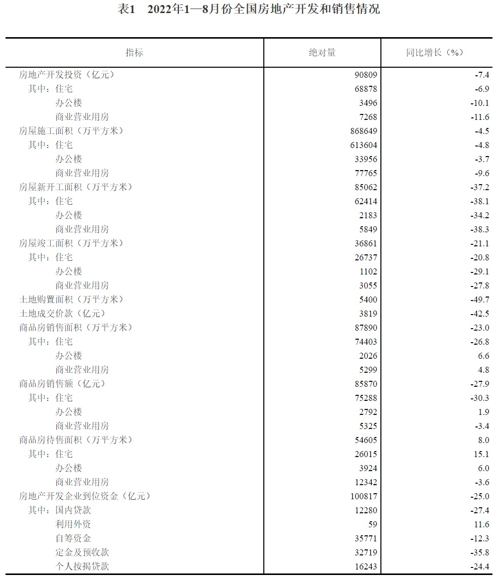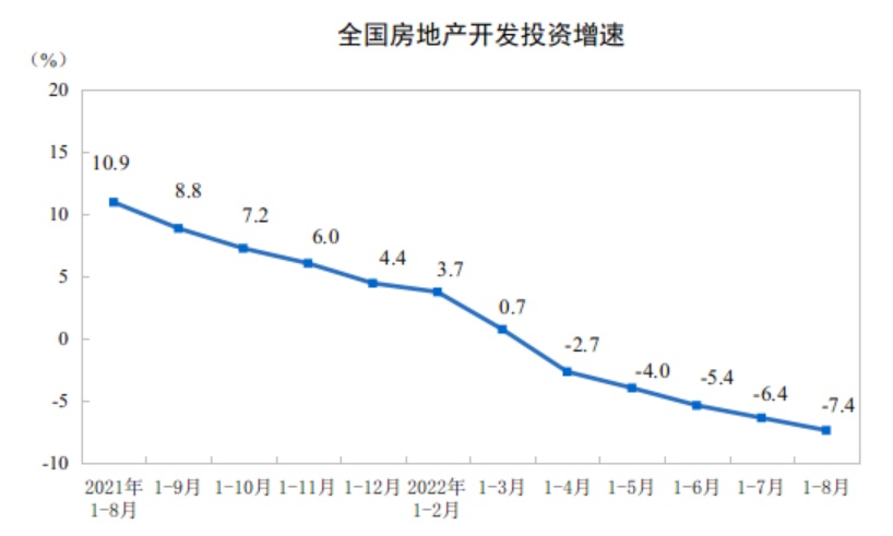 2022年1—8月份全国房地产开发投资下降7.4%