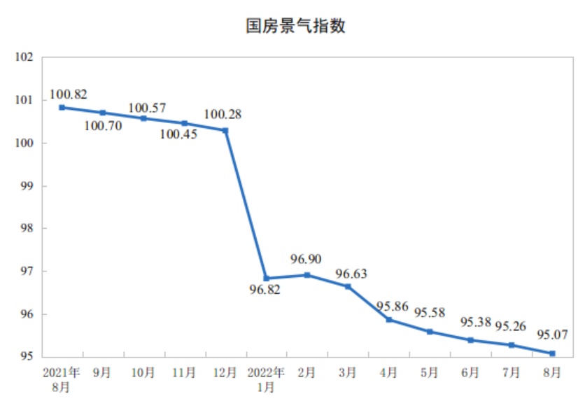 8月份,房地产开发景气指数(简称“国房景气指数”)为95.07。