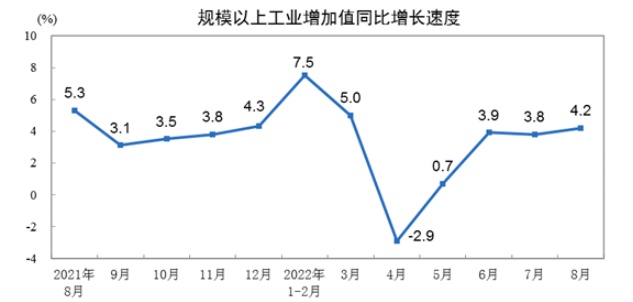 智通财经APP获悉,9月16日,国家统计局数据显示,8月份,规模以上工业增加值同比实际增长4.2%(增加值增速均为扣除价格因素的实际增长率)。从环比看,8月份,规模以上工业增加值比上月增长0.32%。1—8月份,规模以上工业增加值同比增长3.6%。
