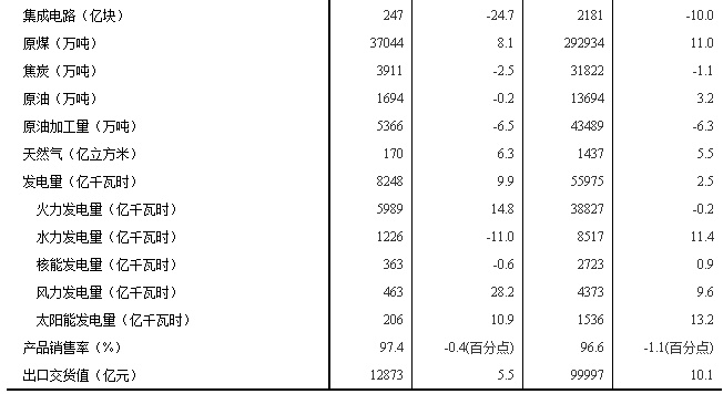 8月份,工业企业产品销售率为97.4%,同比下降0.4个百分点;工业企业实现出口交货值12873亿元,同比名义增长5.5%。