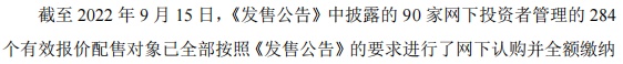 9月16日,华夏基金发布认购申请确认比例结果公告,公告显示,90家网下投资者管理的284个有效报价配售对象已全部按照《发售公告》的要求进行了网下认购并全额缴纳认购款,对应的有效认购基金份额数量为268.966亿份,其有效认购申请确认比例为0.64%。按照基金发售价格计算,网下发售比例配售前的募集规模约为589.04亿元。