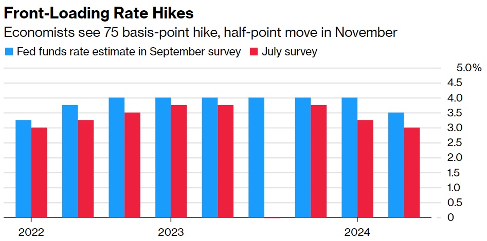 该预测比美联储6月份的预测高出一大截,反映出在8月份CPI增速高于预期后,美联储对通胀的打击更加强硬。