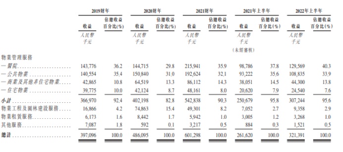 与大多数脱胎于房企、专注住宅服务的物企不同,润华物业的自我定位是医院及公共物业的知名服务供应商,来自这两大板块的收入也正是公司的主要收入来源。从营收占比来看,报告期内,公司医院及公共物业的这两大板块的收益占比分别达到71.6%、60.8%、68%及74.2%。