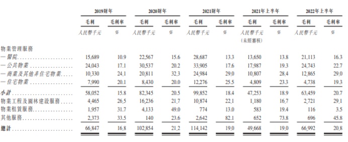 但值得注意的是,虽然公司医院及公共物业的收入占比较高,但两者的毛利贡献并不突出。特别是医院物业板块,其毛利率于报告期内表现波动,分别为10.9%、15.6%、13.3%及16.3%,多年来位处各业务板块的最后一位。